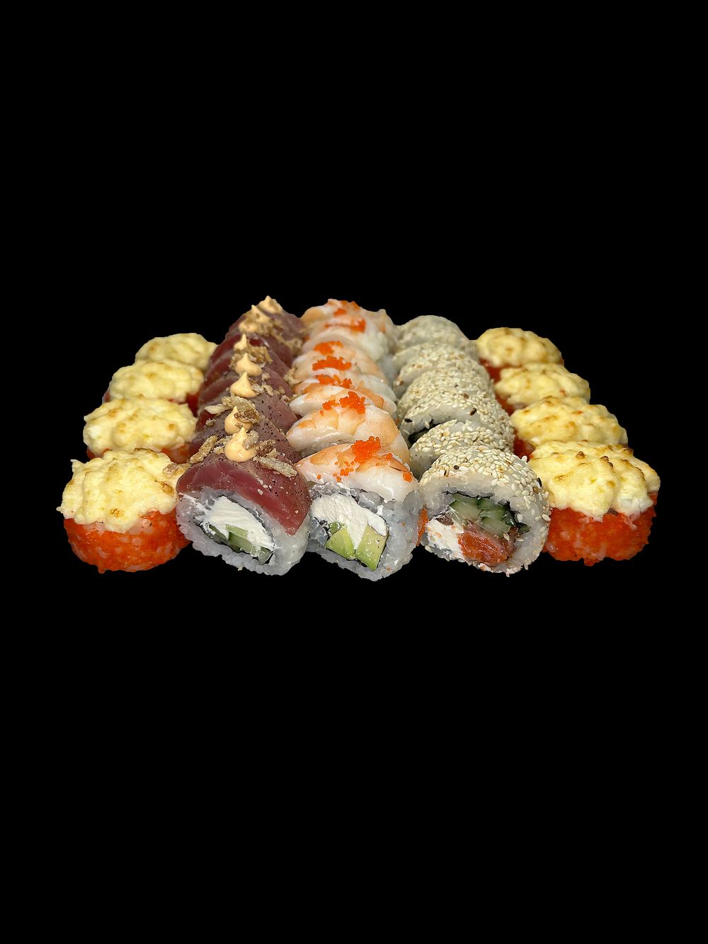 Филадельфия эбби Филадельфия с тунцом татаки Запеченный с курицей Ролл с лососем татаки терияки