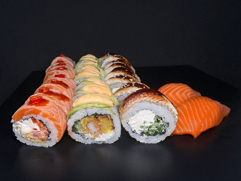 Красный дракон Черный дракон Зеленый дракон Нигири с лососем 2шт