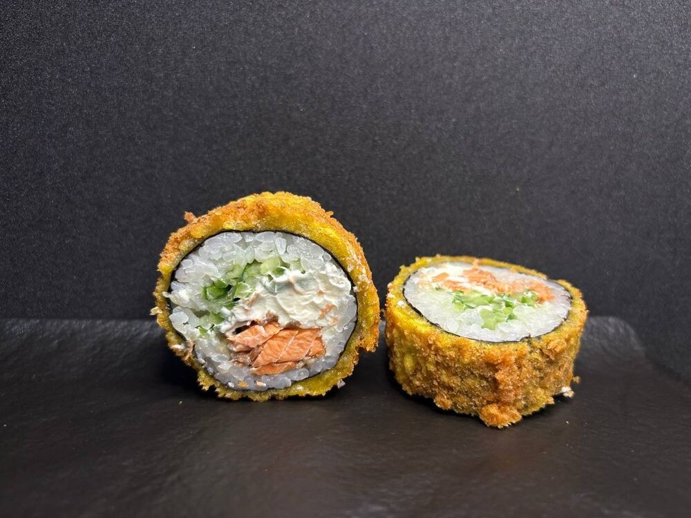Нори, рис, лосось татаки , терияки, огурец, сыр творожный, кляр, сухари панко 8шт
