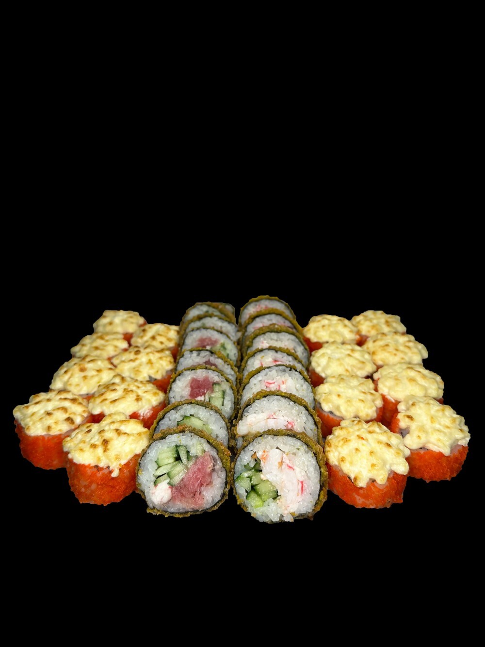 Запеченный ролл с курицей Запеченный с мидиями Темпура с креветкой и крабом Темпура с тунцом и крабом