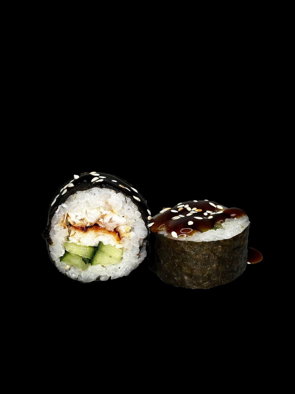 Нори ,рис, угорь, огурец, соус терияки, кунжут 8шт