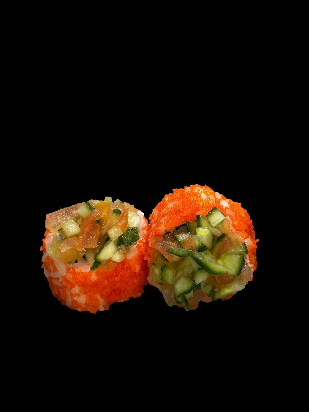 Нори, рис, творожный сыр,креветка, томат,огурец,икра тобико 8шт