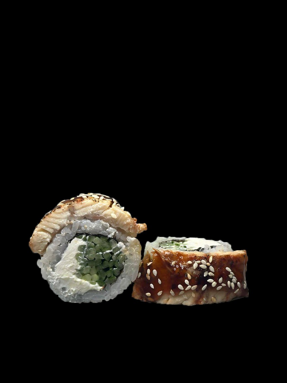 Нори, рис, сыр творожный, огурец, угорь, соус терияки , кунжут 8шт
